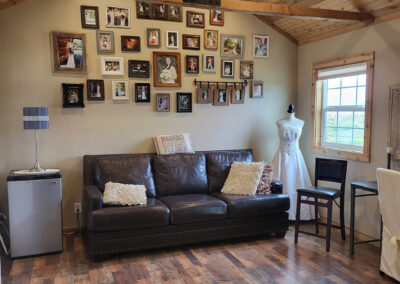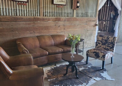 Ceremonies take place in the garden: a shaded, tree-lined space cultivated over decades, with a wooden arbor and open lawn that feels both natural and lovingly tended. Nearby, the 125-year-old barn brings a touch of rustic charm, with room for guests to gather, share stories, and raise a glass in remembrance.